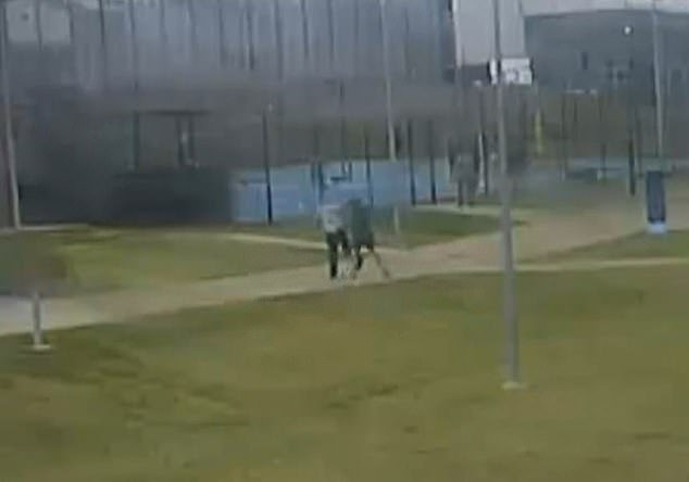 En las imágenes, el prisionero se quita la camisa y camina mientras otros oficiales corren en ayuda del angustiado guardia, pero los reclusos tienen otras ideas y atacan de nuevo.