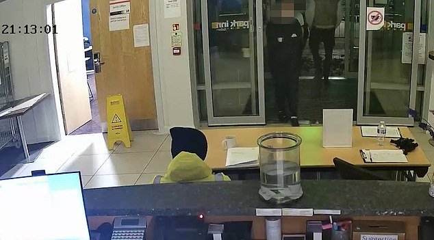 CCTV capturó el momento en que Majek supuestamente irrumpió en la casa de Rhiannon Whyte cuando pasó junto a ella en la entrada del hotel Park Inn donde vivía.