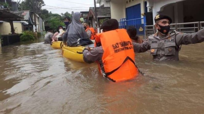 Además, también se utilizó equipamiento pesado: 99 volquetes, 3 grúas, 6 combijets, 59 excavadoras, 1 autocargador y 1 cargadora sobre ruedas. También se desplegaron un total de cuatro unidades de bombeo auxiliares en los subdepartamentos SDA de Yakarta Norte y Yakarta Central para acelerar la gestión de inundaciones. El Gobierno Provincial de DKI Yakarta también proporciona puestos de salud y servicios sociales a los residentes que huyeron a varios lugares. (Hormiga)