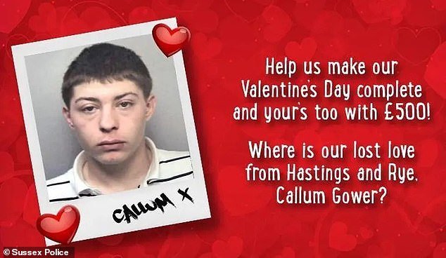 El romántico mensaje ofrecía una recompensa de £500 si podían encontrar a su San Valentín perdido.
