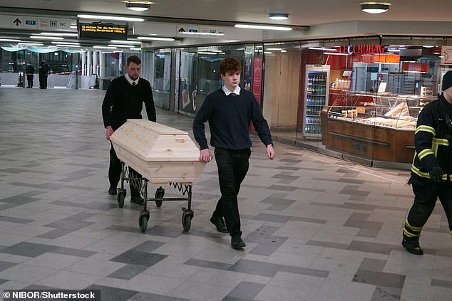 Los dos cuerpos fueron evacuados de la estación en ataúdes de madera. Los agentes ahora están reuniendo y revisando pruebas, incluidas imágenes y declaraciones de testigos.