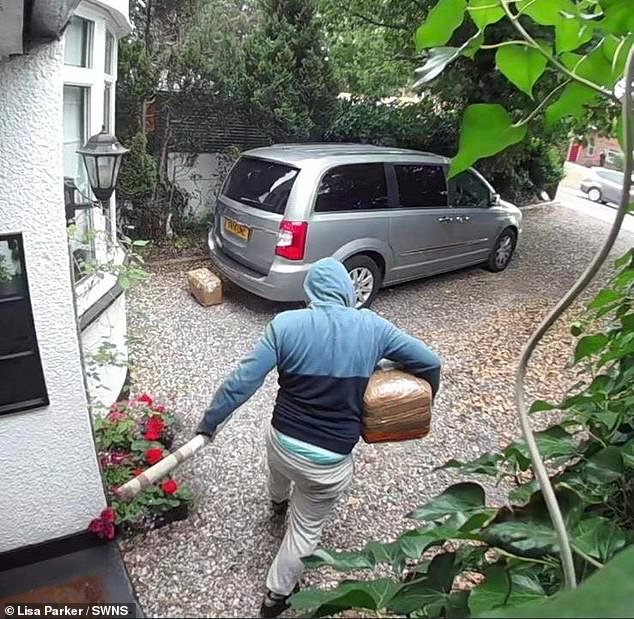Lisa Parker, de Canterbury, solo pudo observar con horror cómo un hombre con sudadera con capucha robaba los paquetes entregados por Amazon y DPD, todo filmado en vivo desde el timbre de su puerta.