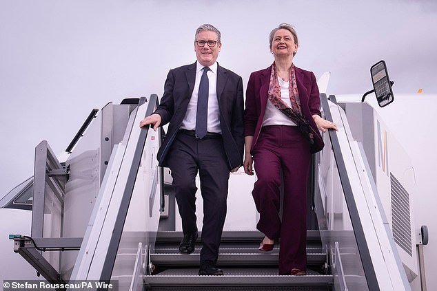 El Primer Ministro Sir Keir Starmer y la Ministra de Asuntos Exteriores Yvette Cooper llegan al aeropuerto de Munich, Alemania, antes de la Conferencia de Seguridad de Munich.